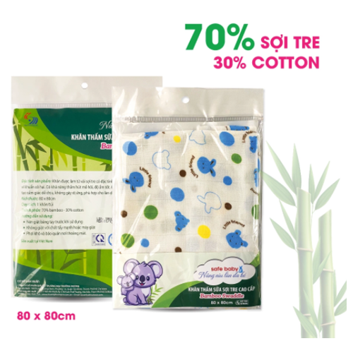 - Sản phẩm khăn sữa sợi tre SafeBaby kích thước 80x80cm sẽ giúp bạn chăm sóc của bé một cách trọn vẹn hơn, sản phẩm gồm 6 cái giúp Mẹ chăm sóc bé toàn diện hơn.