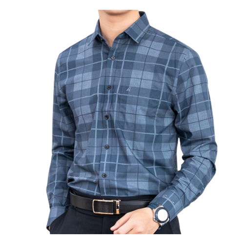 - Áo sơ mi nam trung niên màu xanh than dài tay họa tiết kẻ caro vải sợi tre chính là gợi ý tuyệt vời cho phái mạnh mỗi khi lựa chọn trang phục sơ mi đi làm mỗi ngày.
