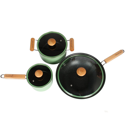 - Bộ nồi gồm quánh 16cm, nồi 20cm và chảo 32cm rất tiện dụng.