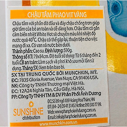 - Chất liệu an toàn: được làm từ nhựa cao cấp, không chứa BPA, PVC, Chậu tắm phao vịt vàng Munchkin đảm an toàn khi sử dụng.