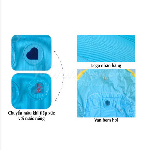 - Chậu tắm phao vịt vàng cho bé không gian tắm rộng: với kích thước 79cm x 48 cm, khi thổi lên, bé tha hồ vùng vẫy trong một không gian khá thoải mái, tha hồ chơi với các bạn đồ chơi nhà tắm khác như sao phun nước, sinh vật biển, ...