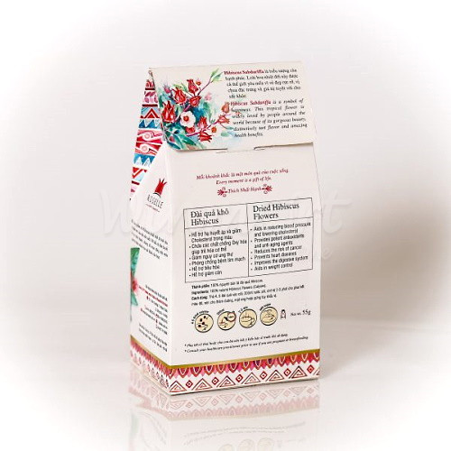 Sản phẩm Đài quả khô Hibiscus được sấy khô từ quả Hibiscus được trồng tự nhiên. Cứ 25kg đài quả tươi Hibiscus thì làm được 1kg đài quả khô. Do được sản xuất bằng phương pháp sấy khô nên sản phẩm giữ nguyên được màu đỏ nguyên bản, vị chua tự nhiên, các dưỡng chất chứa trong đài quả Hibiscus.
