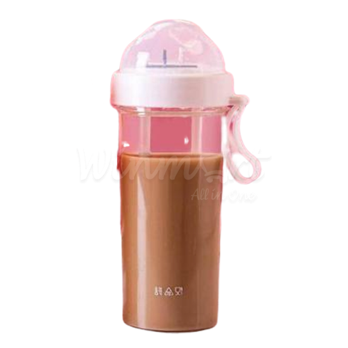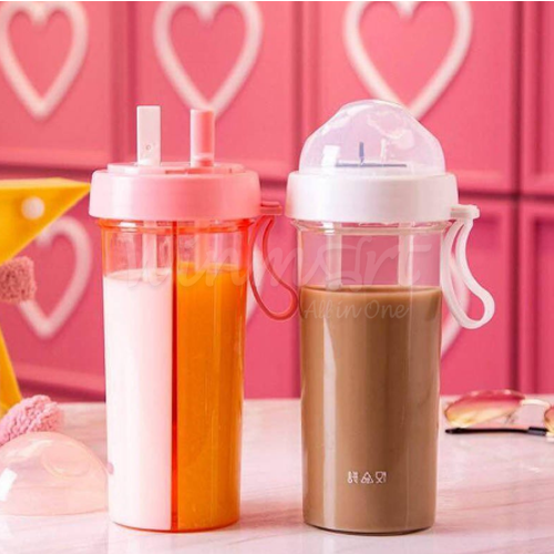 Bình nước 2 ngăn có dung tích lên đến 600ml, mỗi bên có dung tích 300ml. Bình được trang bị sẵn 2 ống hút tiện dụng với 2 màu sắc khác nhau để bạn phân biệt loại thức uống trong từng ngăn. Nắp đậy chắc chắn, kín đáo chống bụi bẩn và chống đổ nước cực hiệu quả. Bình nước có quai xách cực tiện dụng nên bạn có thể mang theo khi đi làm, đi học hoặc treo trên xe.