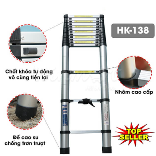 Thang nhôm rút đơn HK - 138 tiện lợi với việc sắp xếp, cất giữ và tiết kiệm không gian trong gia đình và công sở, trọng lượng 11,2kg và chịu trọng tải lên đến 300kg, thang nhôm rút đơn HK - 138 mang đến sự chắc chắn và độ an toàn cao, cũng như dễ dàng di chuyển với sự nhẹ nhàng, linh hoạt của sản phẩm.