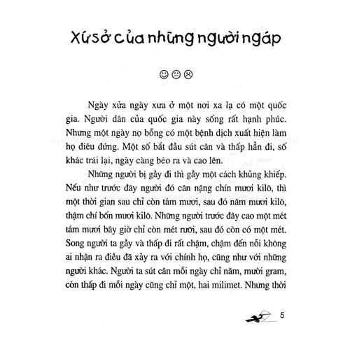 Ngày xửa ngày xưa, ở một nơi xa lạ có một quốc gia. Người dân của quốc gia này sống rất hạnh phúc. Nhưng một ngày nọ bỗng có một bệnh dịch xuất hiện làm họ điêu đứng. Một số bắt đầu sút cân và thấp hẳn đi, số khác trái lại, ngày càng béo ra và cao lên. Những người bị gầy đi thì gầy một cách khủng khiếp…
