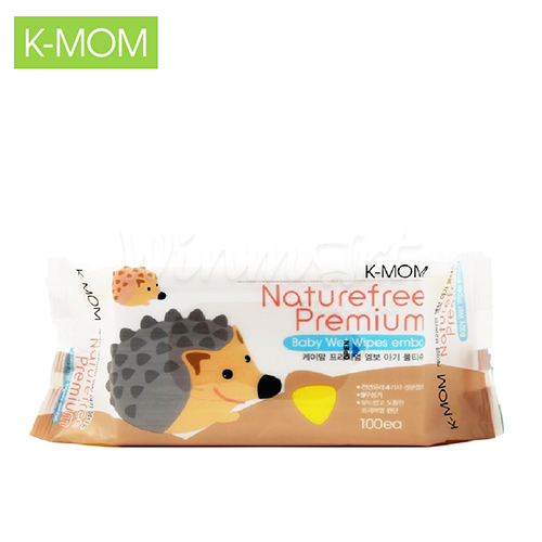 100 Khăn ướt cao cấp K-Mom Hàn Quốc vân nổi vô cùng dịu nhẹ, không gây kích ứng cho da bé và có khả năng kháng khuẩn nhờ 4 tinh chất từ thiên nhiên.