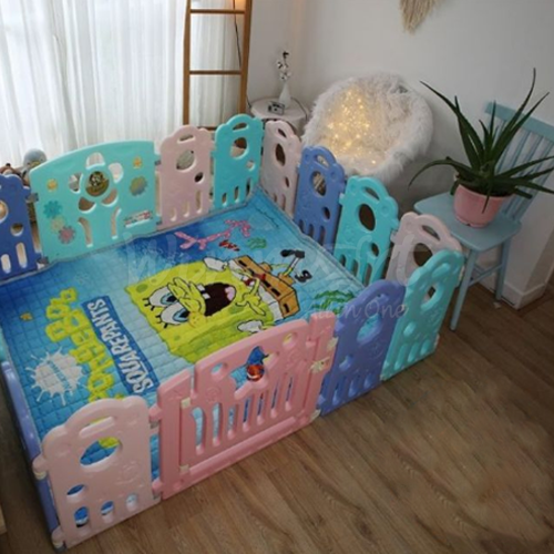 Bạn đang lo lắng khi con tập trườn, tập bò, chỉ 1 phút sơ sẩy người lớn không để mắt đến là bé có thể bị ngã đau và gây tổn thương đến cơ thể còn non nớt của bé. Bé đến tuổi tập đi mẹ lại càng phải chú ý bám sát con hơn vì bé rất hiếu động và đặc biệt nguy hiểm khi nhà có cầu thang, bậc cao hay cửa sổ, cửa ra vào chưa có lưới bảo vệ. Tìm đâu ra 1 chỗ an toàn đế con có thể thoải mái vui chơi và ba mẹ đỡ lo lắng? Với 12 Miếng nhựa ghép quây cũi cho bé dưới đây, bố mẹ có thể dễ dàng tạo ra cho con một không gian chơi lành mạnh, thoải mái và an toàn trong chính căn nhà của mình. Với bộ quây cũi, bé có thể cùng bạn bè nô đùa với những trái bóng bên trong hoặc chơi các trò chơi đồ hàng thú vị. Từ đó, kích thích trí thông minh và tăng cường khả năng vận động của trẻ trong những năm tháng đầu đời. Bộ quây cũi cũng là giải pháp vẹn toàn và thuận tiện đối với các bé đang trong thời gian tập bò, tập đi bởi nó như một người bạn vững vàng giúp bảo vệ bé khi vui chơi, giúp bé tập đứng, tập đi nhanh hơn.