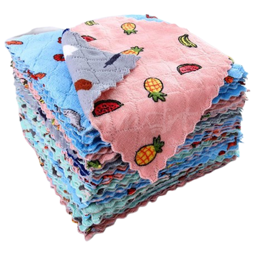 - Khăn có hình vuông, kích thước 25cm*25cm, họa tiết hoa quả, thực phẩm, đồ uống, ... rất bắt mắt, màu sắc tươi sáng, có đường may chần chéo kiểu cách.