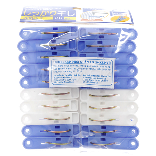- Túi kẹp phơi 20 chiếc Aisen LK001 giúp cố định quần áo khi phơi mà không làm ảnh hưởng tới chất lượng quần áo.
