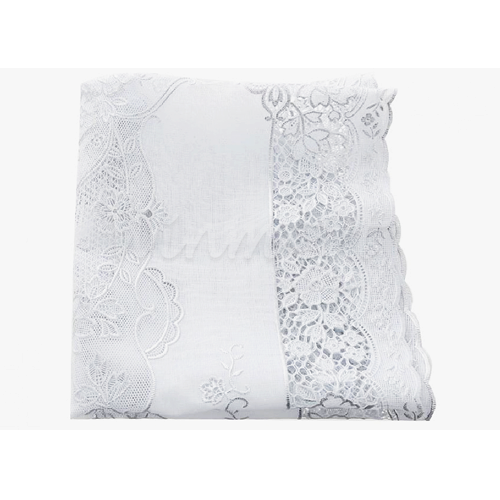 - Khăn bàn có hình chữ nhật đơn giản nhưng vô cùng bắt mắt nhờ họa họa tiết hoa màu trắng, hồng trang nhã, nổi bật trên nền trắng, góp phần tô điểm thêm cho chiếc bàn xinh xắn của gia đình bạn.