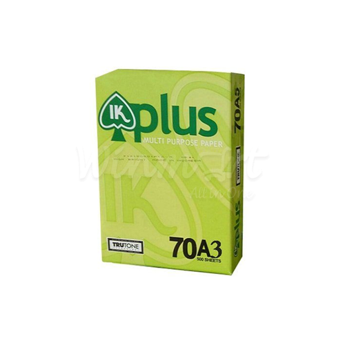 Giấy in IK Plus A3 định lượng 70gsm là khổ giấy phổ biến đối với việc in các bản thiết kế, tài liệu chuyên dụng. Giấy đáp ứng nhu cầu in ấn của hầu hết các loại máy in, máy fax và máy photocopy trên thị trường. Hơn nữa, có thể sử dụng để vẽ sơ đồ hoặc phác thảo các bản vẽ ứng dụng của các nhà thiết kế, các kiến trúc sư, các đơn vị làm quảng cáo.