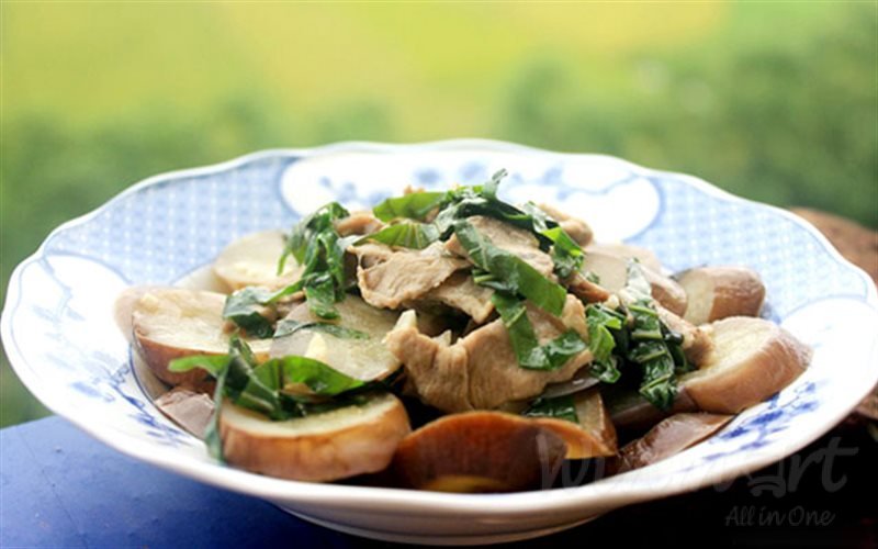Nguyên liệu cần chuẩn bị: 100g thịt heo xay, 3g hành lá, 3g gừng, 1 trái cà tím, 10g bột mì, 25g khoai tây, 10g ngò rí.