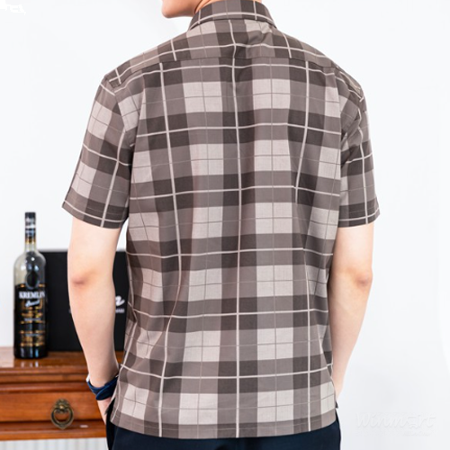 - Áo sơ mi nam trung niên màu nâu nhạt cộc tay kẻ sọc caro vải sợi tre chính là gợi ý tuyệt vời cho phái mạnh mỗi khi lựa chọn trang phục sơ mi đi làm mỗi ngày.