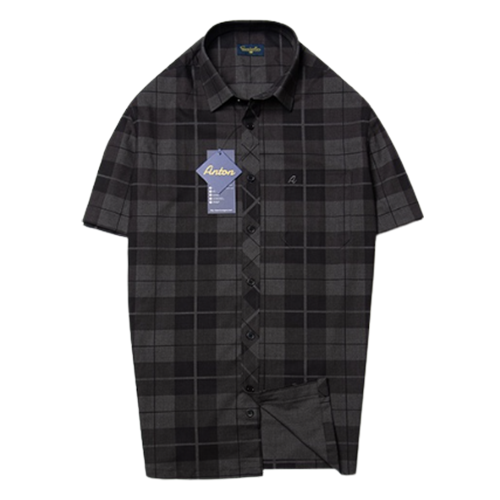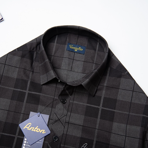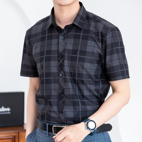 - Áo sơ mi nam trung niên màu đen cộc tay họa tiết kẻ caro vải sợi tre chính là gợi ý tuyệt vời cho phái mạnh mỗi khi lựa chọn trang phục sơ mi đi làm mỗi ngày.