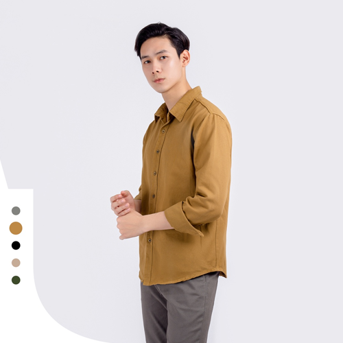- Áo sơ mi nam trung niên màu nâu vàng dài tay của Hàn Quốc chính là gợi ý tuyệt vời cho phái mạnh mỗi khi lựa chọn trang phục sơ mi đi làm mỗi ngày.