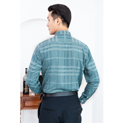 - Áo sơ mi nam trung niên màu xanh lục dài tay kẻ sọc caro vải sợi tre chính là gợi ý tuyệt vời cho phái mạnh mỗi khi lựa chọn trang phục sơ mi đi làm mỗi ngày.