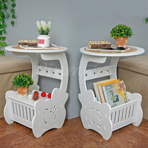 Với mặt bàn được thiết kế hình tròn nhỏ xinh với đường kính 45cm và chiều cao 59cm cùng với chiều rộng khỏang 35cm không chiếm nhiều diện tích trong không gian của bạn. Thanh trụ được phá cách thiết kế vòng cung độc đáo và chắc chắn. Bên dưới chân bàn được thiết kế như một giá sách vô cùng tiện dụng cho bạn có thể để những vật dụng như sách báo hay những đồ vật trang trí khác, cùng với đó là họa tiết những chú mèo kitty vô cùng đáng yêu nhé.