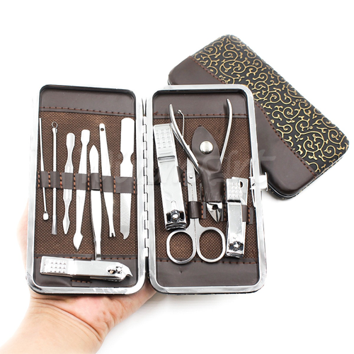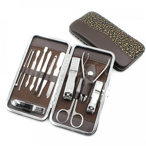 Bộ sản phẩm gồm 12 món: 3 đồ bấm móng tay lớn + vừa + nhỏ, kéo cắt lông mũi, kềm cắt da, cây nặn mụn, 1 cây móc tai, 1 dũa, 1 nhíp, 2 cây lấy khóe, 1 dụng cụ làm sạch móng.