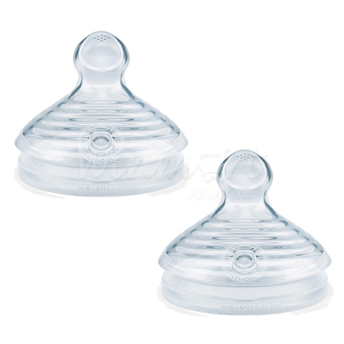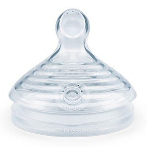 - Núm ti Nuk được làm từ chất liệu silicone hoặc cao su tự nhiên mềm dẻo, có 2 kích cỡ S1 (phù hợp cho bé 0-6 tháng) và S2 (phù hợp cho bé 6-18 tháng). Cỡ S (3 tia) dùng cho nước hoặc sữa mẹ; Cỡ M (6 tia) dùng cho sữa bột; Cỡ L (9 tia) dùng cho bột hoặc thức ăn đặc.- Xuất xứ: Đức.