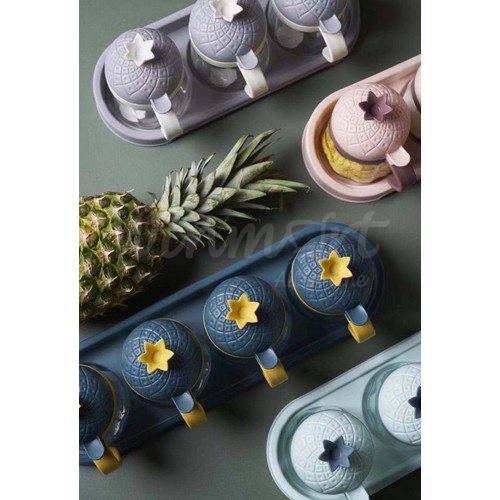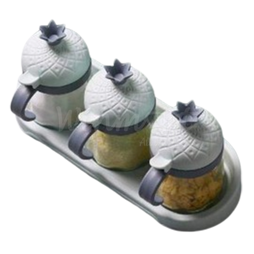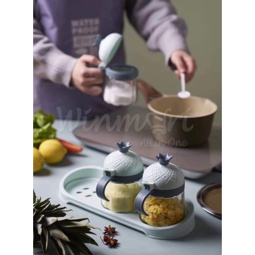 - Mỗi lọ thủy tinh đều có tay cầm và thìa múc gia vị riêng biệt rất thuận tiện khi sử dụng.