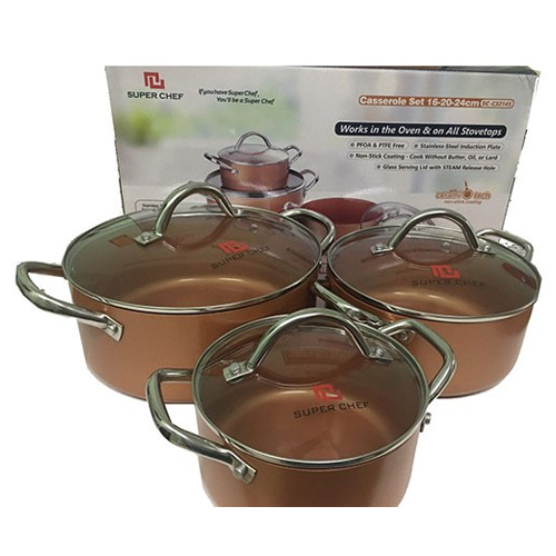 - Nồi Super Chef được sản xuất theo công nghệ tráng men Ceramic Nhật Bản hiện đại và an toàn bậc nhất sẽ mang đến cho chị em nội trợ những tính năng an toàn cho sức khỏe và khả năng chống dính hoàn hảo.