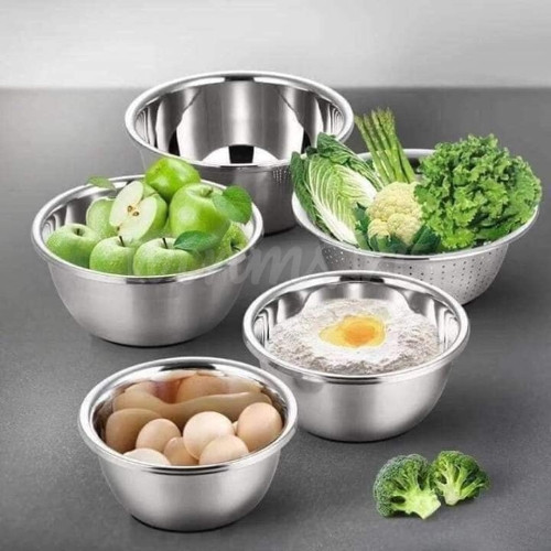 Bộ 4 Chậu & 1 Rổ Inox là bộ sản phẩm cực kì hữu dụng & thiết thực cho công đoạn sơ chế thức ăn hàng ngày của mọi gia đình. Sản phẩm không chứa chất gây hại cho sức khỏe người dùng, an toàn hơn so với các sản phẩm bằng nhựa thông thường. Bộ thau rổ có thiết kế đơn giản hình tròn với vành trên mài nhẵn rất chắc chắn, chất liệu inox mang tính thẩm mỹ cao. Các lỗ nhỏ trên thân rổ giúp thực phẩm đựng bên trong nhanh chóng khô ráo. Vệ sinh các dụng cụ chất liệu Inox cũng nhanh sạch hơn dụng cụ làm từ nhựa.