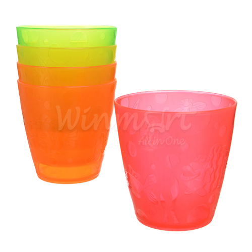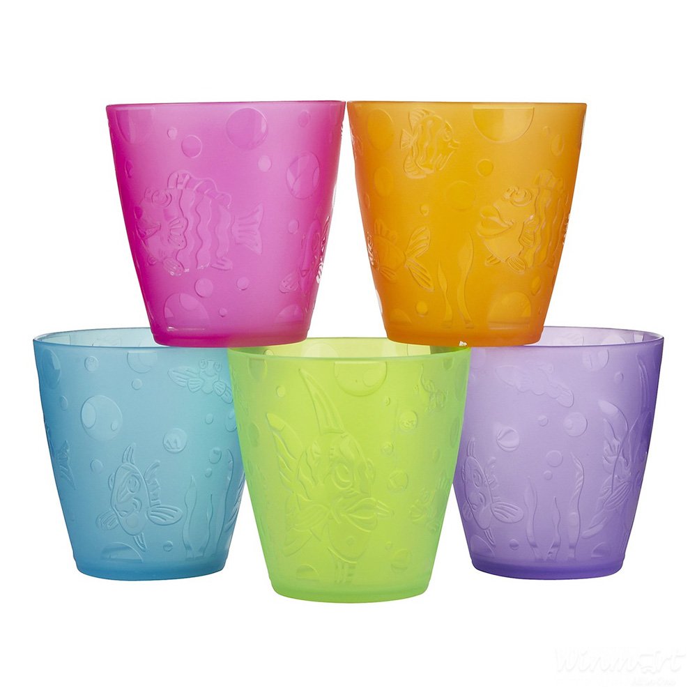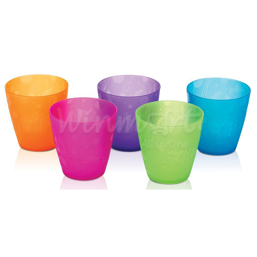 - Bộ 5 cốc với 5 màu sắc khác nhau da cam, hồng, tím, xanh da trời, xanh lá cây, đều là những màu sắc tươi sáng phù hợp với sở thích của bé.