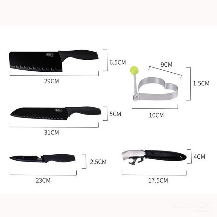 Phải nói dao kéo là những món đồ dùng nhà bếp không thể thiếu đối với bất kỳ gia đình nào. Để đáp ứng nhu cầu chế biến nhiều loại thực phẩm khác nhau, bạn rất cần dao kéo kích thước khác nhau. Việc sở hữu một bộ dao tốt, sắc bén sẽ giúp cho công việc của người nội trợ trở nên nhẹ nhàng hơn. Hôm nay Winmart.onl xin giới thiệu Bộ dao Buck-I sắc bén 5 món cao cấp với nhiều kích cỡ khác nhau, cùng 1 khuôn trứng, 1 kẹp gắp đồ chiên, sẽ giúp bạn sử dụng cho nhiều mục đích bếp núc khác nhau thật dễ dàng mang đến cho bạn sự tiện dụng khi sử dụng cũng như tạo không gian bếp thêm sang trọng và đẳng cấp.