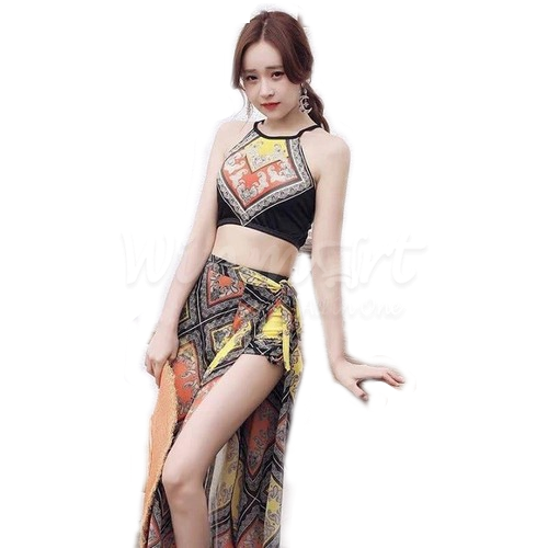 ->> Bộ đồ Bikini họa tiết thổ cẩm thiết kế áo dạng yếm kết hợp quần form ôm nhấn mạnh sự cuốn hút, tôn lên những đường cong gợi cảm.