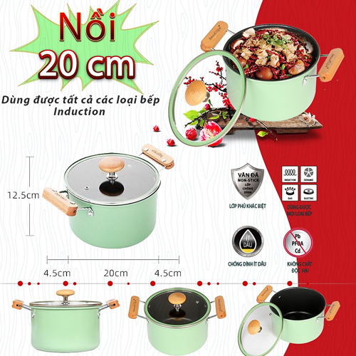 - Bộ nồi gồm chảo và nồi, quánh kích thước 20cm rất tiện dụng.