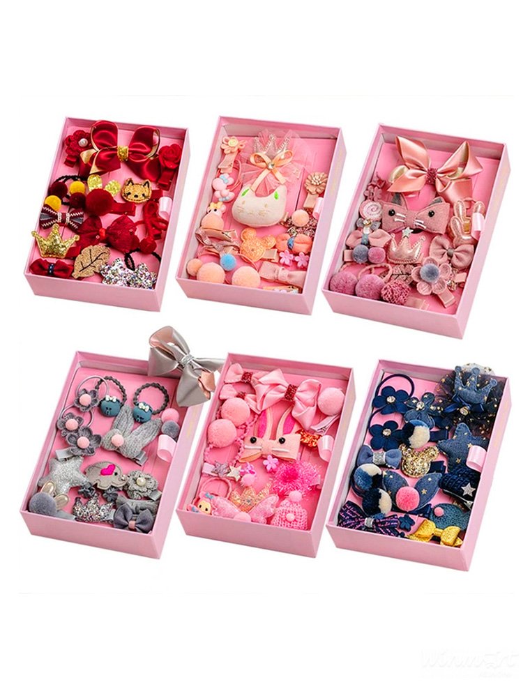 Bộ sản phẩm gồm 18 phụ kiện tóc cho bé với nhiều công dụng khác nhau từ chun buộc tóc đính nơ đính ngôi sao, đến những chiếc kẹp tóc nơ, kẹp tóc hoa vô cùng điệu đà và tinh tế cho bé yêu xinh như một nàng công chúa trong chuyện cổ tích.