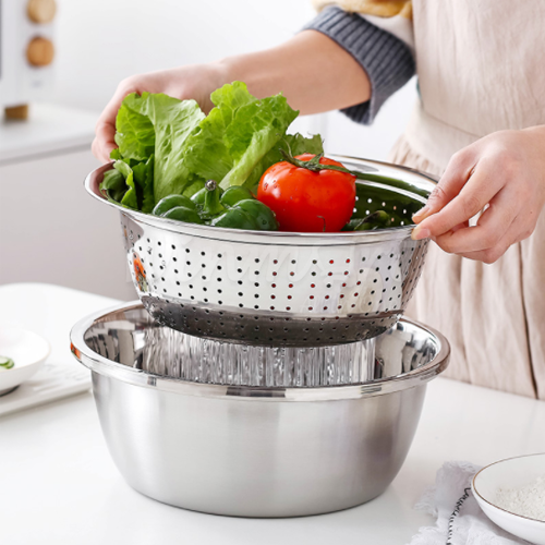 - Bộ Rổ Nạo Inox 3 Chi Tiết Đa Năng siêu tiện dụng này với bàn nạo 5 kiểu bào sợi khác nhau cùng Rổ và