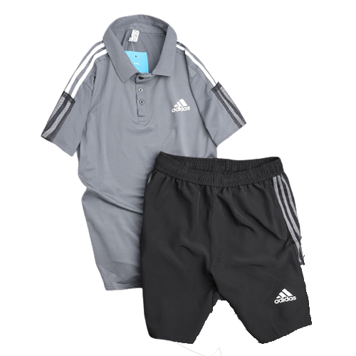 Bộ thể thao Adidas cộc áo màu Xanh ghi có cổ quần Đen