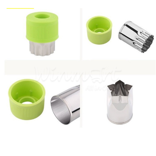 Bộ tỉa rau củ tỉa hoa cà rốt Khuôn dễ dàng để cắt hoa quả thành nhiều hình dáng đẹp mắt chỉ trong 1 nốt nhạc. Việc bạn cần làm là ấn khuôn vào lát hoa quả có sẵn ( dày , mỏng tùy món ăn nha), lấy ra thì có ngay các loại hoa đẹp mắt. với khuôn này, nó sẽ giúp các bạn không mất nhiều thời gian mà còn tạo ra nhiều món ăn vừa ngon vừa đẹp. Thêm một ưu điểm nữa là dễ chùi rửa, vì khuôn làm bằng thép không gỉ nên đừng lo bị sét nha. Ngoài ra Bộ tỉa rau củ dùng khuôn để cắt bánh hay rau câu đều ok hết, rất tiện dụng đúng không nào.