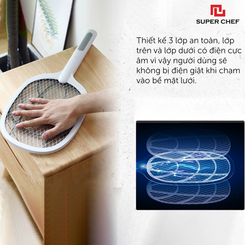 - Cùng với thiết kế năng động, trẻ trung, hiện đại, Vợt bắt muỗi Super Chef là lựa chọn thông minh cho không gian ngôi nhà xinh xắn của bạn.