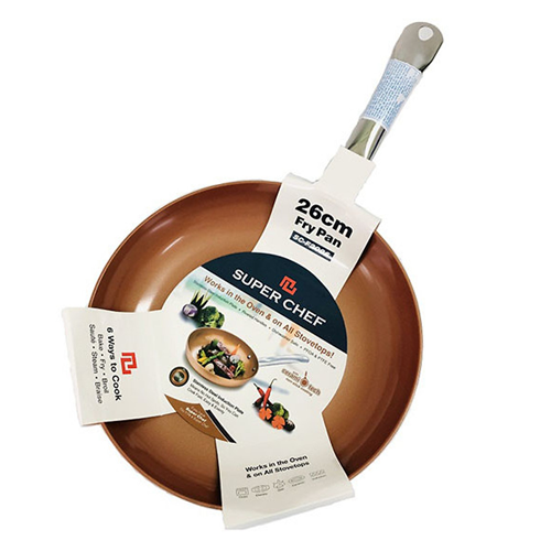 - Chảo Super Chef được sản xuất theo công nghệ tráng men Ceramic Nhật Bản hiện đại và an toàn bậc nhất sẽ mang đến cho chị em nội trợ những tính năng an toàn cho sức khỏe và khả năng chống dính hoàn hảo.