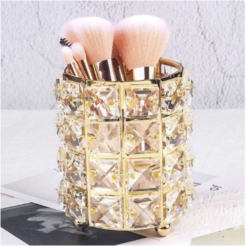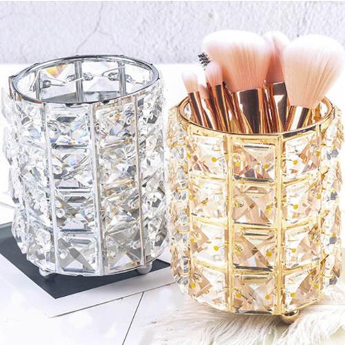 - Khung viền được làm bằng hợp kim chắc chắn và đính các hạt trong suốt lắp lánh vô cùng đẹp mắt Ngoài để cắm cọ trang điểm còn có thể dùng để cắm chì kẻ mắt, lược, cắm bút để bàn làm việc hay làm quà tặng Là một vật dụng vừa tiện ích, vừa trang trí tuyệt vời cho góc làm đẹp của các cô nàng xinh đẹp
