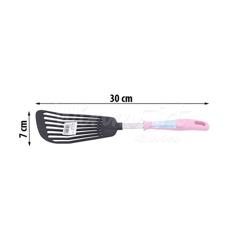 Thân sạn làm bằng thép không gỉ chắc chắn, cán được bọc nhựa giúp tránh bị nóng khi thao tác. Thiết kế đầu sạn dẹt, bề mặt sạn có các lỗ dài giúp bạn dễ dàng đảo, lật và chiên xào thức ăn mà không bám dính một nhanh chóng và không tốn nhiều công sức.
