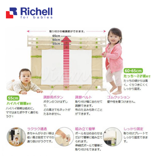 + Cửa chặn an toàn Richell Size S từ 60cm đến 90cm+ Cửa chặn an toàn Richell Size L từ 130cm đến 185cm