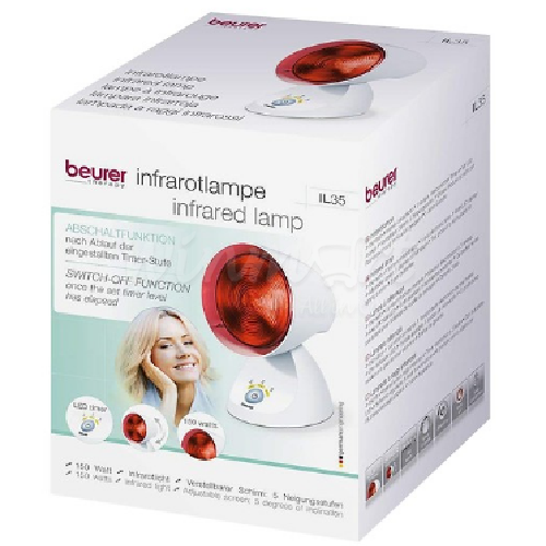 đèn hồng ngoại trị liệu 150w có hẹn giờ mã IL35 được nhập khẩu từ Đức là thiết bị y tế được các bác sỹ khuyên dùng thường xuyên để trị liệu kích thích làm tăng khả năng hoạt động của các tế bào, mạch máu, các mô..., tăng sự bài tiết các chất cặn bã trên cơ thể, ngoài ra sức nóng của đèn còn có tác dụng giảm đau, chống co cứng cơ; làm giãn mạch, tăng chuyển hóa và dinh dưỡng tại chỗ.