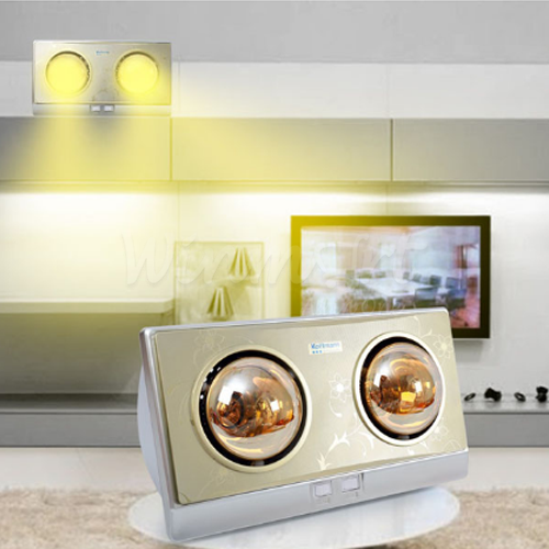- Đèn sưởi nhà tắm Kottmann 2 bóng K2BH sử dụng 2 bóng hồng ngoại tráng kim cương nhân tạo có tác dụng giảm chói mắt khi sử dụng và tăng độ ấm cao hơn những bóng thông thường (ấm hơn khoảng 10 độ C).
