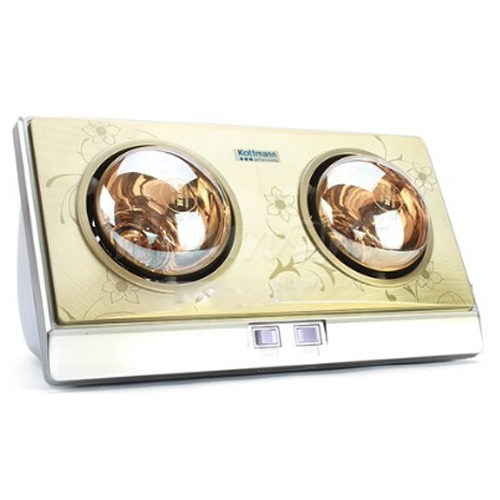 Đèn sưởi nhà tắm Kottmann 2 bóng K2BH có màu vàng kim với hoa văn sang trọng, kích thước nhỏ gọn phù hợp lắp đặt cho phòng tắm có diện tích từ 2 - 4 m2.