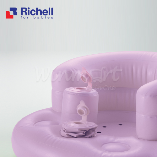 Chiếc ghế hơi cho bé tập ngồi Richell màu tím này là dạng ghế hơi, có thiết kế thông minh tự bơm hơi, chỉ cần bạn mở nắp van, kéo lên ấn xuống khoảng hai phút là đã có ngay chiếc ghế êm ái, mềm mại cho bé yêu. Ngoài ra, ghế có kiểu dáng rất an toàn, nhờ thiết kế trụ chắn phía trước ghế, để bé luôn được giữ trên ghế.