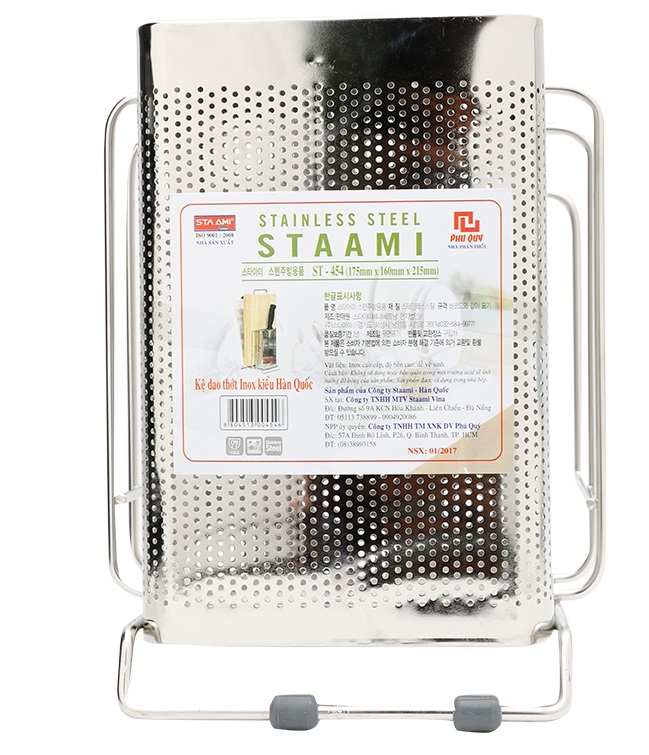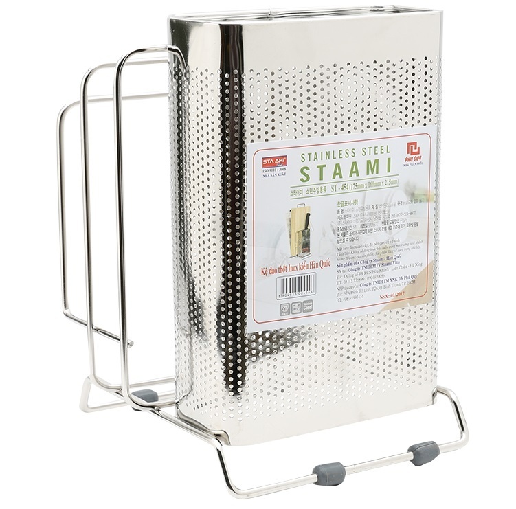 - Kệ dao thớt inox kiểu Hàn Quốc Sta Ami ST-454 là vật dụng cần thiết trong không gian nhà bếp, được làm từ chất liệu thép không gỉ sáng bóng, an toàn. Chất liệu này còn hạn chế bám bụi bẩn, giúp bạn dễ dàng vệ sinh lau chùi