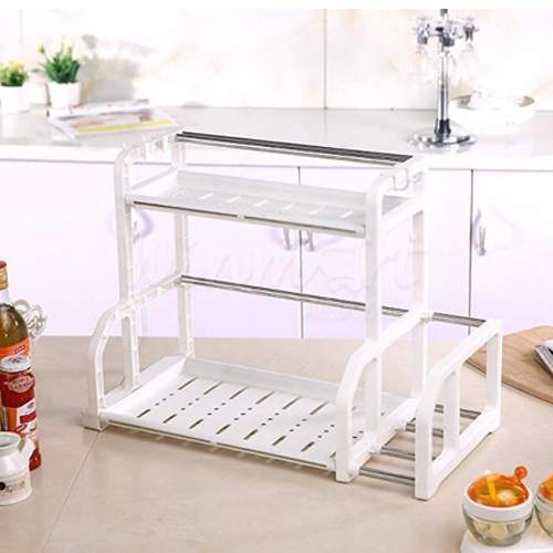 Kệ đựng đồ nhà bếp thông minh 2 tầng hình chữ P chuyên dùng để sắp xếp gọn gàng, chứa đựng các lọ gia vị, để dụng cụ nấu ăn, có móc muôi thìa, có chỗ dắt dao..,và có thêm giá để thớt... giúp căn bếp nhà bạn thêm gọn gàng, sạch sẽ, ngăn nắp và xinh xắn hơn! Kệ đựng đồ nhà bếp thông minh 2 tầng 068 làm từ chất liệu nhựa PP cao cấp, sáng đẹp và rất chắc chắn, cùng inox không gỉ, đảm bảo an toàn cho sức khỏe, không có chất độc hại; thiết kế hợp lý giúp để đồ thuận tiện, cho không gian nhà bếp luôn gọn gàng, ngăn nắp.
