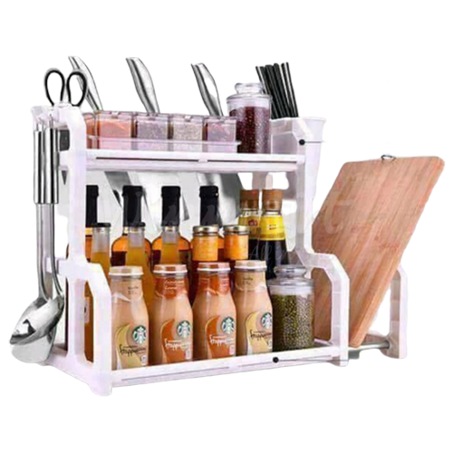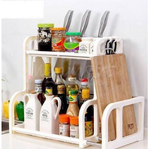Kệ đựng đồ nhà bếp kèm khay dao thớt là một trong những sản phẩm đồ gia dụng nhà bếp tiện ích mà bất kỳ gia đình nào cũng nên có. Kệ 2 tầng đựng đồ nhà bếp với thiết kế thông minh giúp bạn có thể sắp xếp các loại đồ dùng nhà bếp cũng như gia vị một cách khoa học để cho bạn dễ dàng lấy đồ khi nấu ăn.