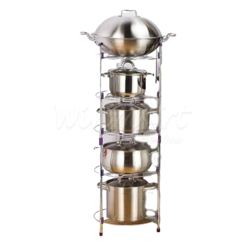 Kệ để xoong nồi chảo nhà bếp bằng inox 5 tầng thông minh tiện dụngKệ để nồi, chảo đa năng được làm từ chất liệu inox bền chắc, chịu lực tốt, dễ vệ sinh. Thiết kế gồm 5 tầng giúp bạn sắp xếp: nồi, chảo gọn gàng, ngăn nắp. Có thể tháo rời và xếp gọn khi không dùng...Kệ để nồi, chảo đa năng được làm từ chất liệu inox cao cấp.