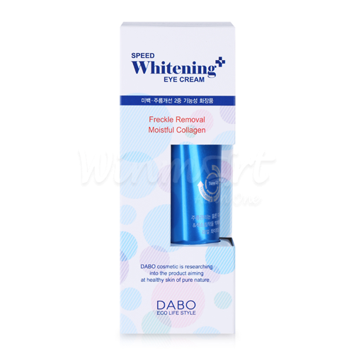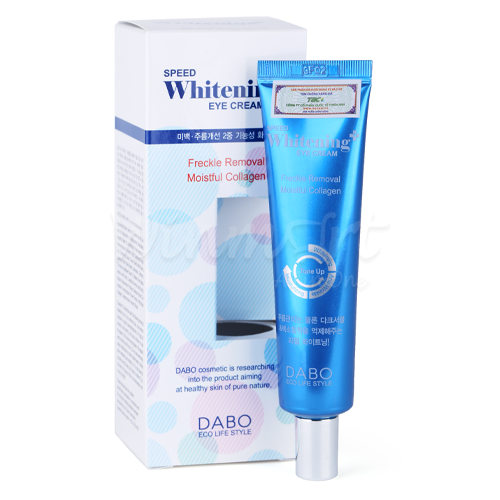 Kem chống thâm quầng mắt DABO Speed Whitening Eye Cream tổng hợp từ tinh chất collagen, bột ngọc trai và mật ong có tác dụng làm trắng và sáng vùng da quanh mắt, giúp loại bỏ những bọng nước nhỏ, quầng thâm và nếp nhăn xung quanh mắt do quá trình lão hóa và khô da, thiếu ngủ, mệt mỏi gây ra.