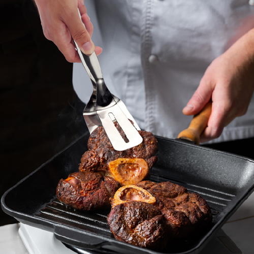 - Bề mặt kẹp gắp Super Chef rộng, giúp kẹp chặt và đủ lượng thức ăn,
