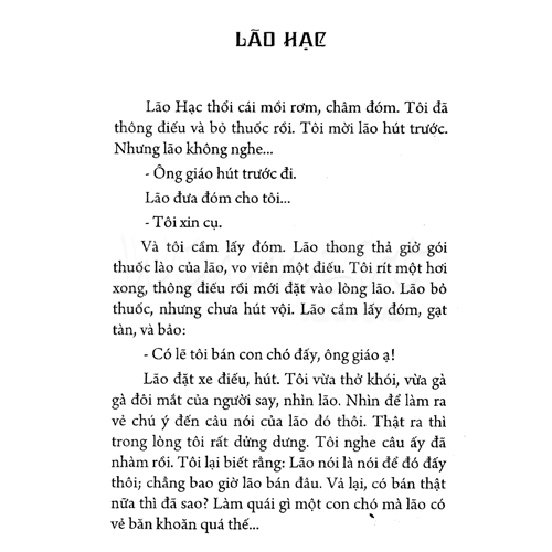 Lão có một con chó tên là Vàng - con chó do con trai lão trước khi đi đồn điền cao su đã để lại. Lão vừa coi như con vừa coi như một người thân trong gia đình. Tuy nhiên, vì gia cảnh nghèo khó không nuôi nổi nó nên ông lão đành cắn răng bán con chó đi. Lão đã rất dằn vặt bản thân mình khi mang một "tội lỗi" là đã nỡ tâm "lừa một con chó". Lão đã khóc rất nhiều với ông giáo (người hàng xóm thân thiết của lão). Nhưng cũng kể từ đó, lão sống khép kín, lủi thủi một mình. Rồi một hôm, lão quyết định tìm đến cái chết để được giải thoát sau bao tháng ngày cùng cực, đau khổ.